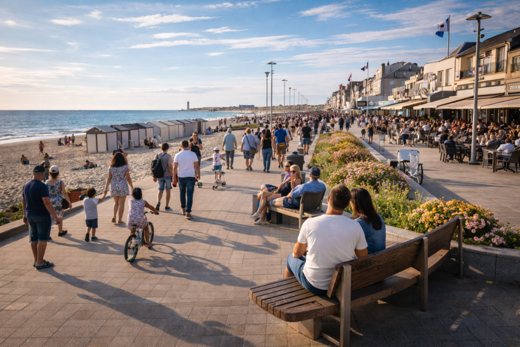 Les parkings situés à proximité du front de mer affichent régulièrement un taux de remplissage élevé, tandis que les cheminements piétons et cyclables voient défiler un flux constant de visiteurs.